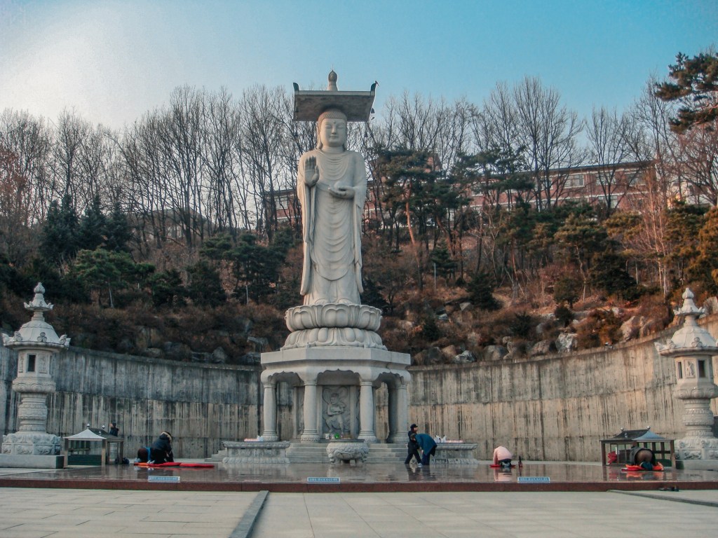 Dari COEX, kami berjalan kaki 10 menit menuju Bongeunsa Temple, sebuah kuil Buddha yang tersembunyi di antara gedung-gedung pencakar langit Gangnam.
