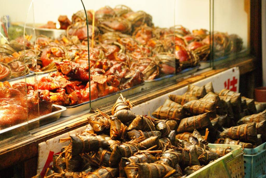 Pas kita explore gang-gang kecil Zhujiajiao, mata kita langsung nyangkut di toko penduduk lokal yang jual makanan dibungkus daun. Bentuknya kayak paket kecil diikat tali, ada yang dikukus, ada yang dibakar. Aromanya? Wangi sedap campur earthy—kayak gabungan beras, daging, dan rempah, semua terkunci rapi dalam daun bambu atau daun lotus.