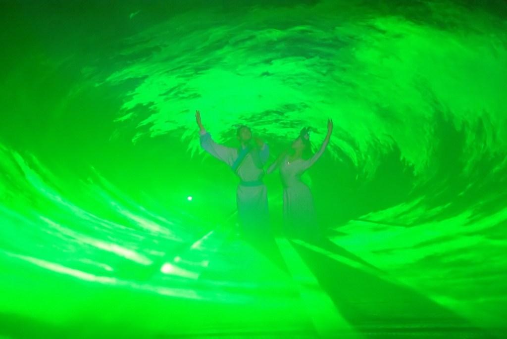 Pertunjukan utamanya berjudul “The Romance of the Song Dynasty”, sebuah drama kolosal yang menggabungkan tari, musik, teknologi panggung canggih, dan efek visual memukau. Ceritanya menggambarkan kehidupan, cinta, dan sejarah Dinasti Song melalui beberapa adegan epik: