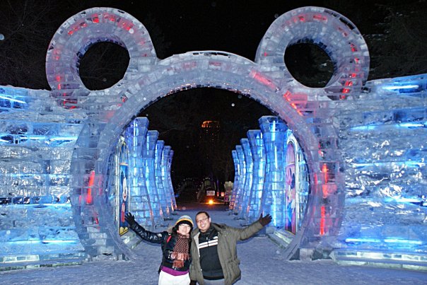 Disney Ice World : Malam harinya, kami menikmati Pameran pahatan es Disney Ice World di Harbin, yang terletak tidak jauh dari hotel.Ini adalah bagian dari Harbin International Ice and Snow Sculpture Festival yang terkenal.