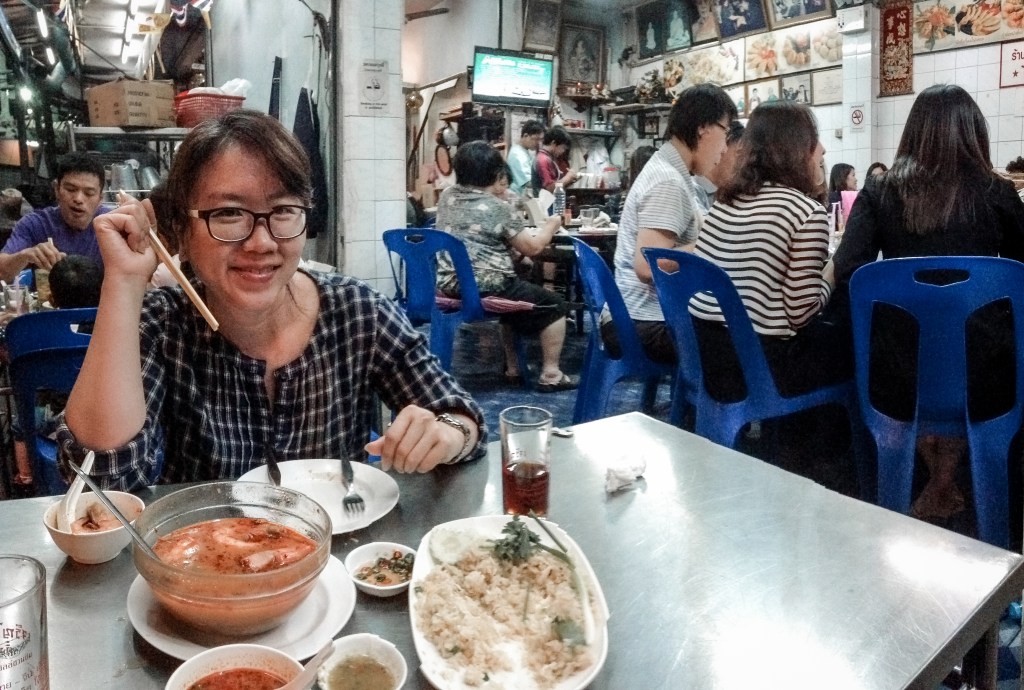 Kami segera menyebut nama restoran tom yam terkenal yang kami tandai di layar hape. “Ahh, Tom Yum Goong!” dia memacu mobil, menerobos jalanan malam yang mulai ramai dengan neon sign dan motor yang meliuk-liuk.