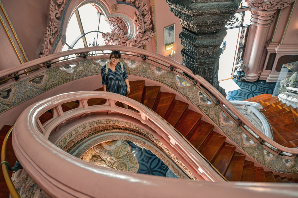 Kami menghabiskan 2 jam hanya untuk mengagumi detailnya—dari mozaik keramik Tiongkok, ukiran kayu tradisional Thai, sampai jendela kaca yang memantulkan cahaya pelangi ke lantai marmer.