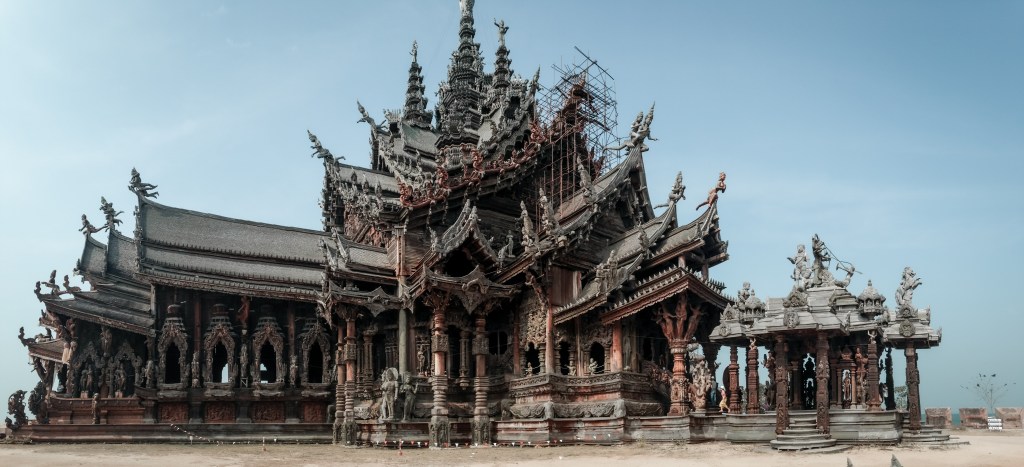 Begitu tiba, kami terpana oleh struktur kayu setinggi 105 meter yang diukir dengan detail fantastik—setiap inci kuil ini dipenuhi pahatan mitologi Hindu-Buddha. Kuil Sanctuary of Truth (Prasat Sut Ja-Tum) di Pattaya bukan sekadar bangunan megah dari kayu, tetapi juga simbol filosofi kehidupan yang dalam. Berikut makna di balik konsepnya yang sengaja dibiarkan tidak selesai.