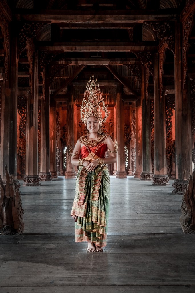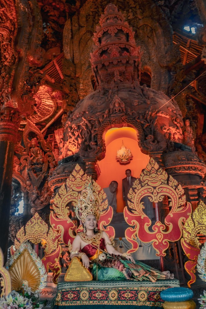 Saat menjelajahi Sanctuary of Truth, Villen tiba-terusik oleh sebuah booth kecil di dekat pintu masuk yang menawarkan penyewaan baju adat Thailand untuk foto di dalam kuil. Tidak pakai lama, langsung dia memilih-milih baju yang mau di pakainya.