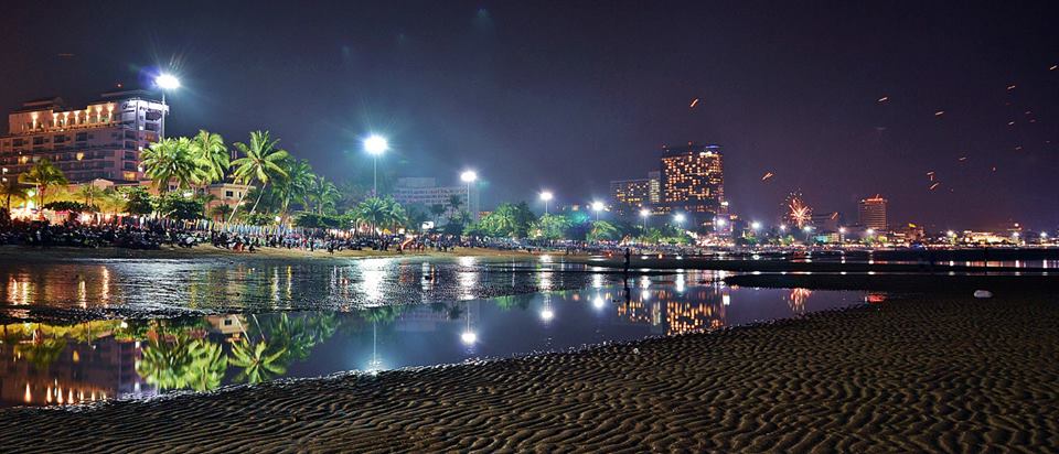 Tepat pukul 00.00: kembang api spektakuler meledak di atas kolam renang dan di seluruh langit kota Pattaya berubah dengan gemuruh kembang api.