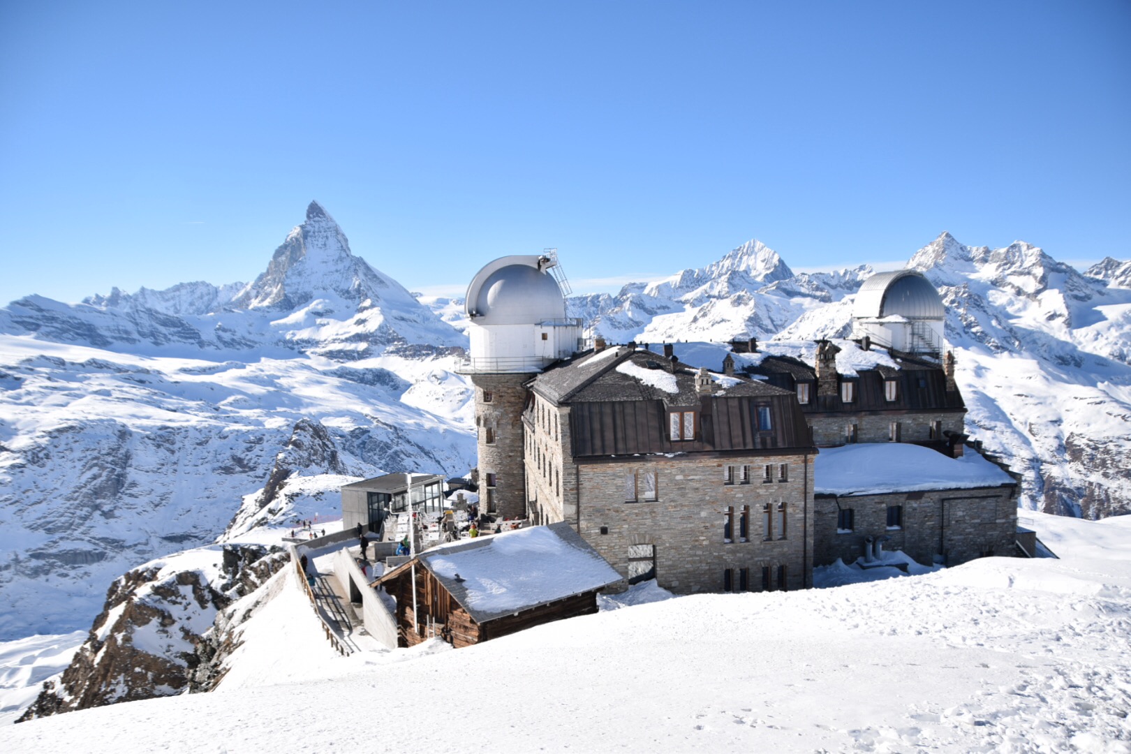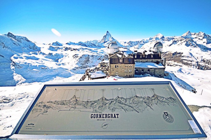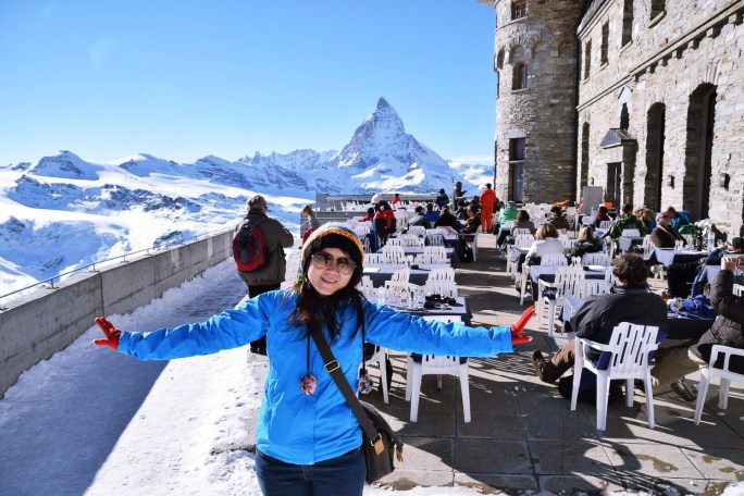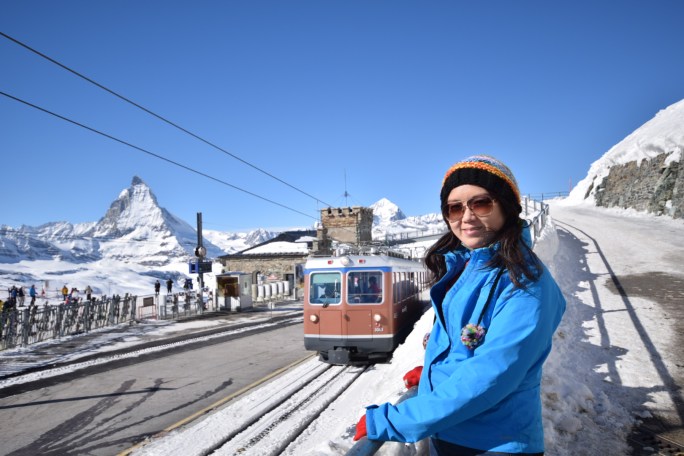 Kami langsung menuju stasiun kereta gantung untuk mencapai puncak Gornergrat. Dalam perjalanan, kami dapat menyaksikan pemandangan spektakuler pegunungan Alpen, termasuk Gunung Matterhorn yang terkenal dengan bentuknya yang menyerupai cokelat Toblerone.