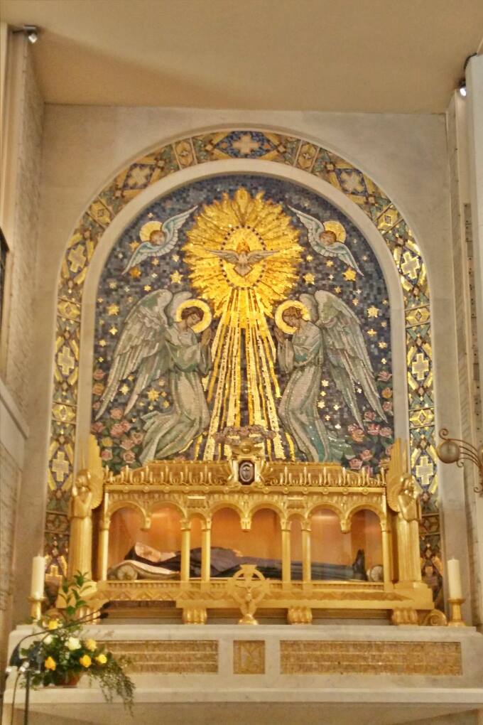 Di dalam gereja, jasad Santa Catherine Labouré dipajang di dalam sebuah peti kaca yang dihiasi dengan indah. Melihat jasadnya yang masih utuh meski sudah berabad-abad menambah kekuatan spiritual yang dirasakan di dalam ruang gereja ini. Keheningan dan ketenangan di kapel tersebut membuat kami merenung dan berdoa, merasakan kedamaian yang mendalam.