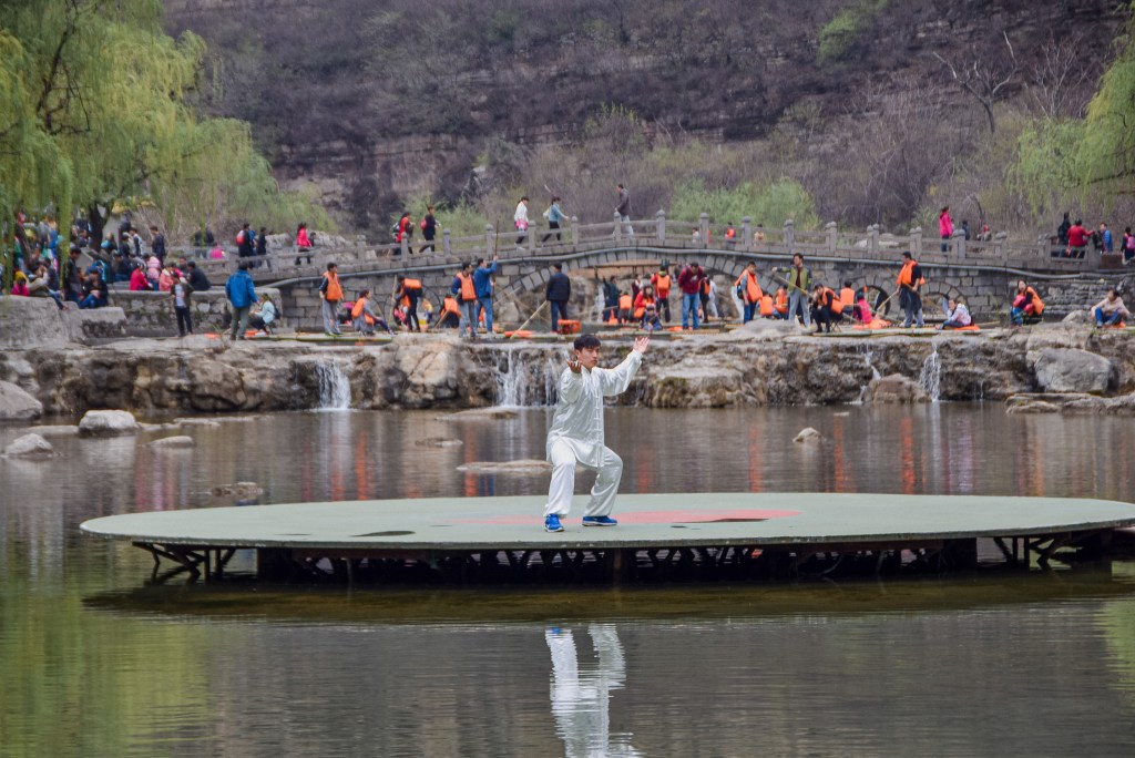Pas saya keluar dari kawasan taman nasional, sedang ada pertujukan tai chi master di tengah danau.