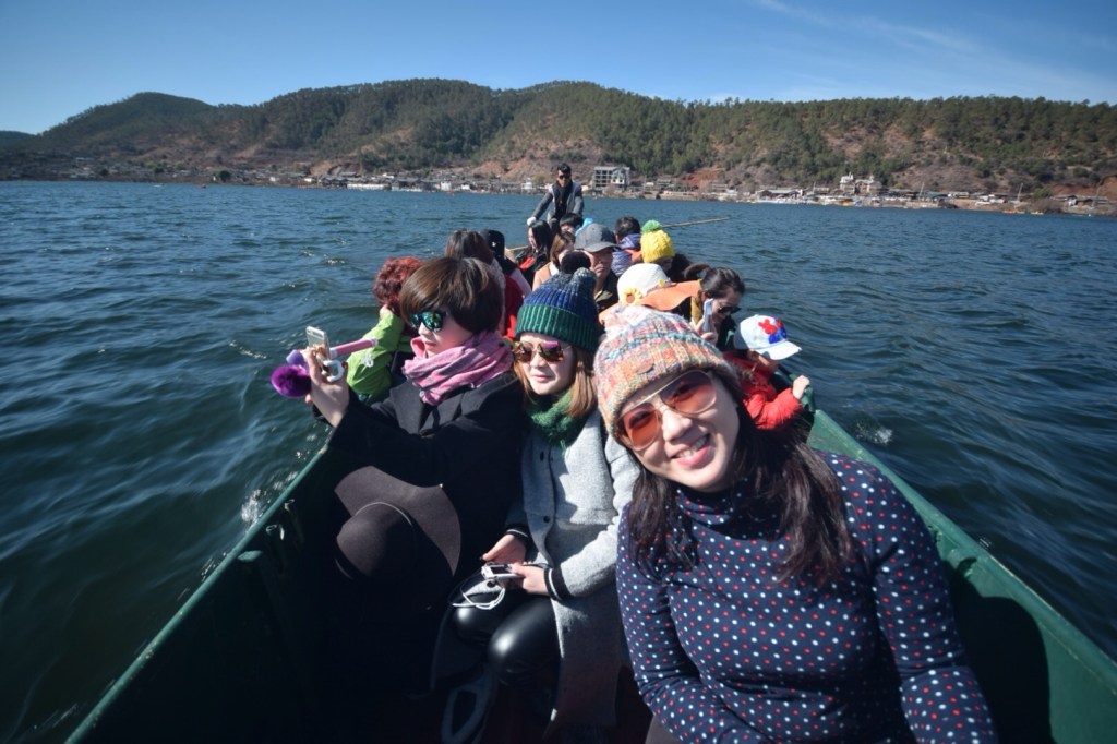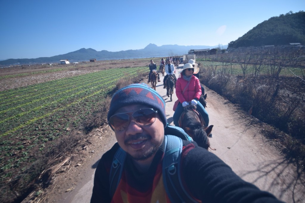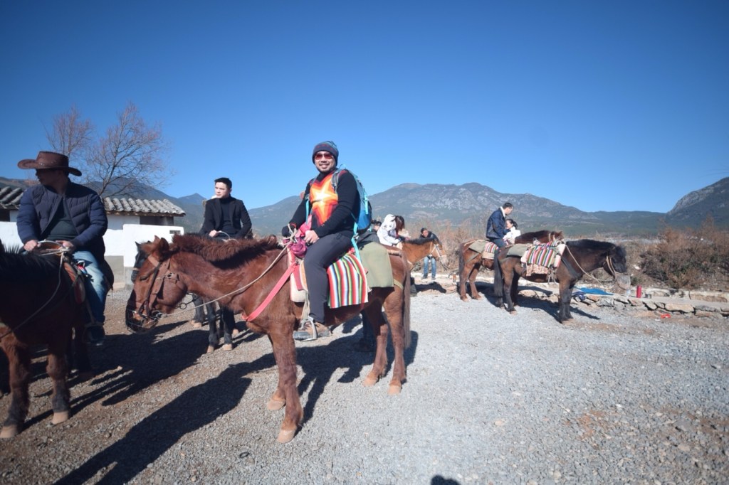 Hari ini rencananya mau ke Jade Dragon Snow Mountain, tapi ternyata kami bangun kesiangan (sarapan jam 10.30!). Resepsionis hotel kami yang baik, Merry, menyarankan untuk tidak ke sana karena bakal ketemu antrean panjang. Alih-alih ke gunung, dia menawarkan paket wisata ke Danau Lashihai dengan harga RMB280/orang (sudah termasuk transport PP, makan siang, dan horseback riding). Kami pun setuju!