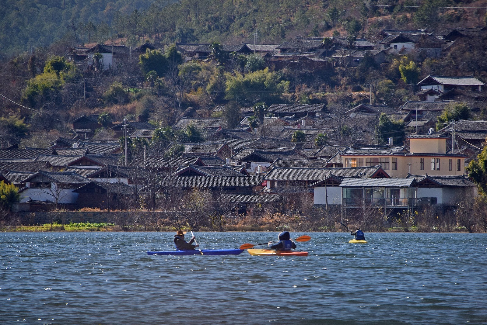 Hari ini rencananya mau ke Jade Dragon Snow Mountain, tapi ternyata kami bangun kesiangan (sarapan jam 10.30!). Resepsionis hotel kami yang baik, Merry, menyarankan untuk tidak ke sana karena bakal ketemu antrean panjang. Alih-alih ke gunung, dia menawarkan paket wisata ke Danau Lashihai dengan harga RMB280/orang (sudah termasuk transport PP, makan siang, dan horseback riding). Kami pun setuju!