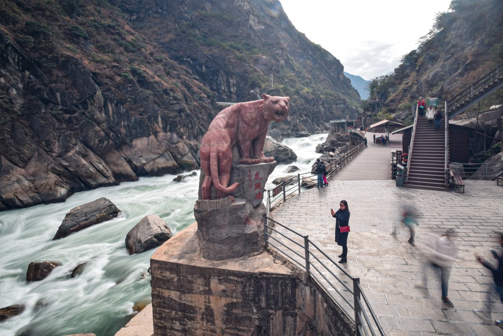 Sekitar 1 jam perjalanan lagi, kami tiba di Ngarai Harimau Terbang, salah satu ngarai terdalam di dunia (3.790 meter dari sungai ke puncak gunung). Tiket masuknya ¥65/orang.