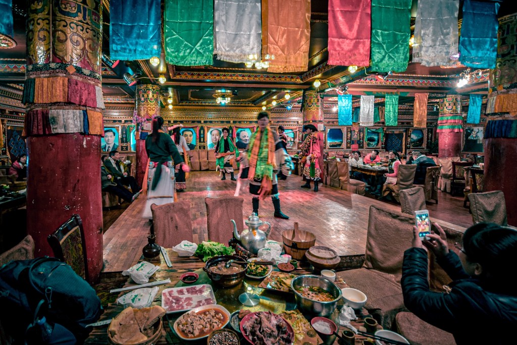 Karena malemnya sepi, kami ikut acara makan malam ala Tibet dengan pertunjukan musik dan tarian.