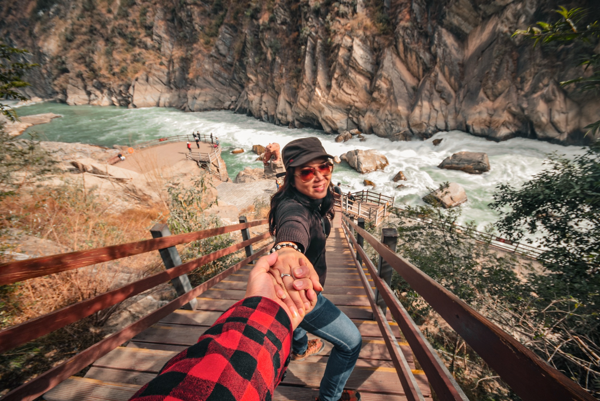 Sekitar 1 jam perjalanan lagi, kami tiba di Ngarai Harimau Terbang, salah satu ngarai terdalam di dunia (3.790 meter dari sungai ke puncak gunung). Tiket masuknya ¥65/orang.
