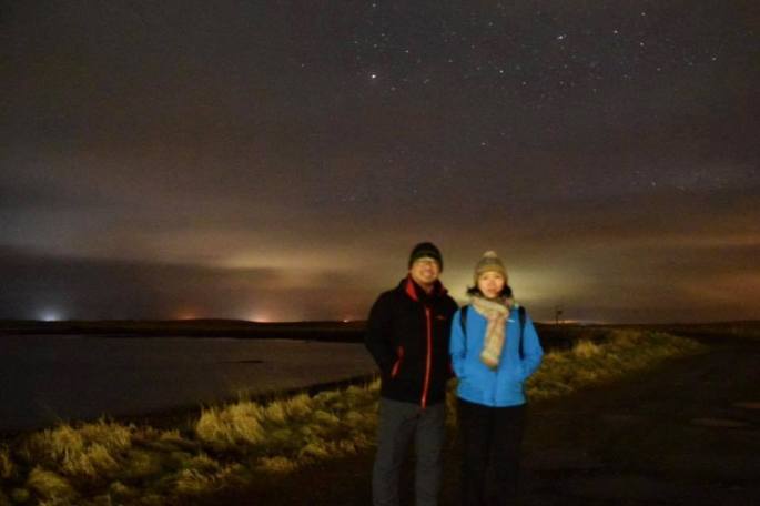 Malam hari seperti sudah direncanakan, kami ingin chasing Aurora di Orkney island maka kita terus memantau pergerakan Aurora malam ini dari Orkney Aurora group di Facebook dan website. Sekitar jam 12 malam ada tanda-tanda Aurora dan kami bersiap untuk mengabadikan moment ini !