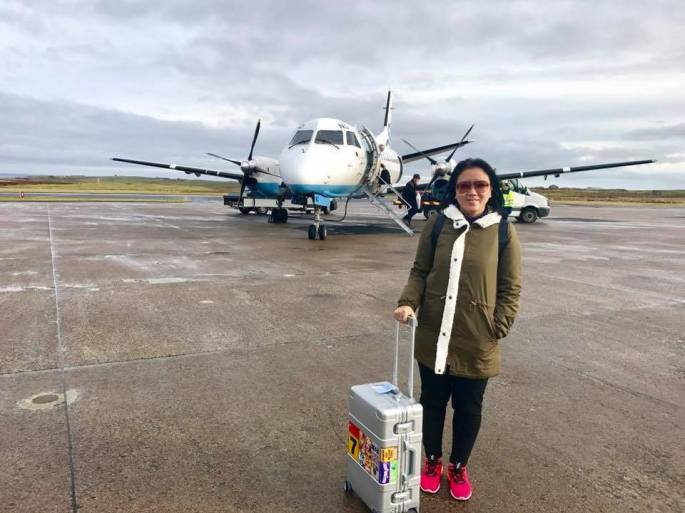 Perjalanan dari London via British airways memakan waktu tidak sampai 4 jam (termasuk transit singkat di Aberdeen, salah satu kota di Skotlandia)