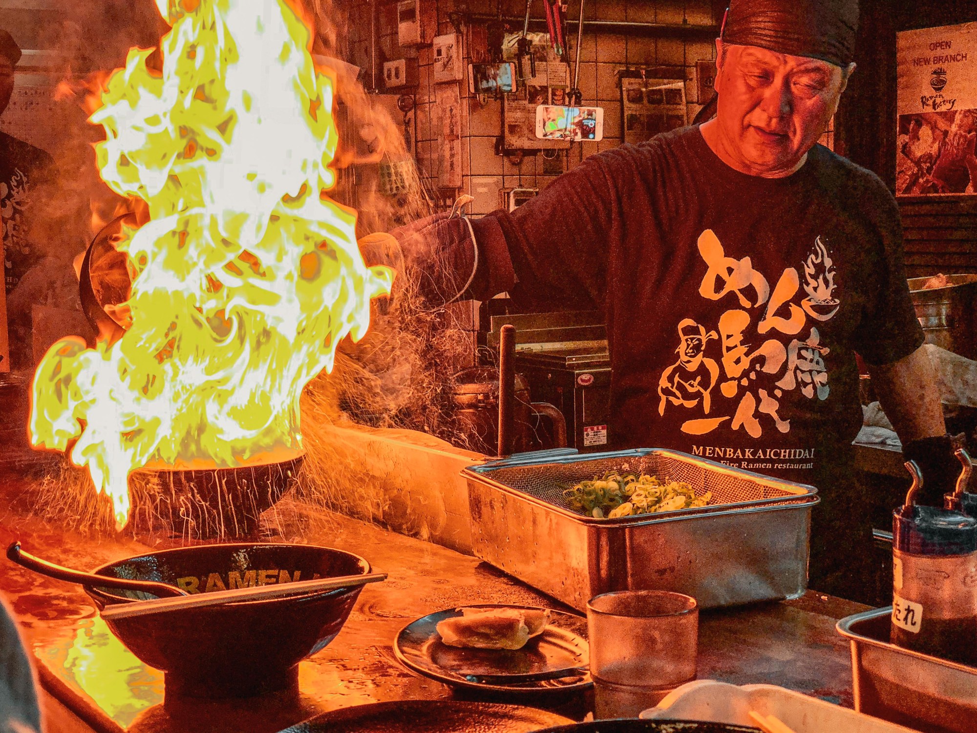 Saat traveling ke Jepang, kami memutuskan untuk mencoba Fire Ramen (Menbakaichidai) di Kyoto—sebuah resto ramen yang terkenal karena penyajiannya yang spektakuler, di mana chef akan membakar minyak cabai di atas mie tepat di depan pengunjung.