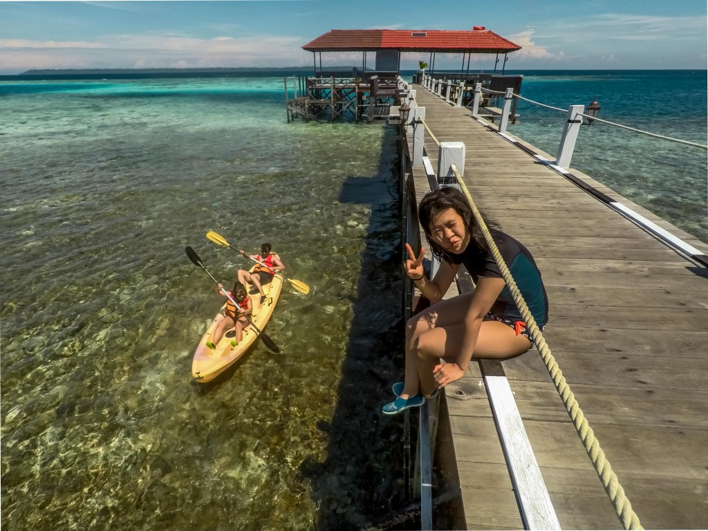 Kemudian, kami harus cepat-cepat keluar ari area Gua Haji Mangku ini kareana air sudah mulai surut, lalu kami putuskan untuk mampir ke resort yang tidak jauh dari resort kami, Green Nirvana Maratua Resort untuk mencoba kayak dan menikmati pantainya juga.