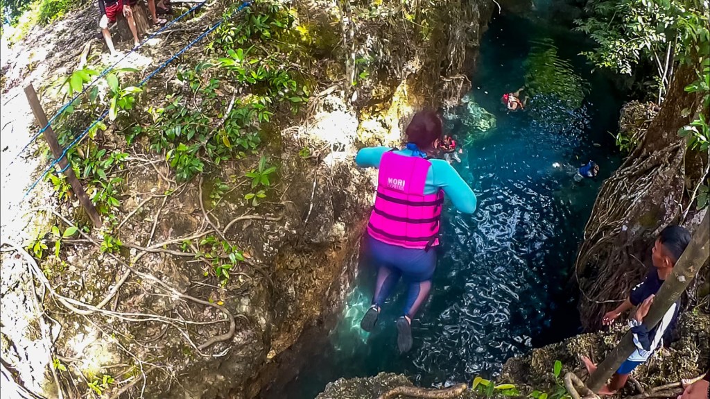 Guide kami bilang, kalau berani menyelam sampai dasar, bisa lihat terowongan kecil yang konstan menghubungkan ke laut…tapi belum ada yang berani coba!