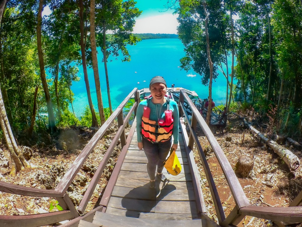 Pemandangan Pertama: Tiba-tiba, dari balik pepohonan, danau itu muncul—airnya hijau pirus, tenang, dan dikelilingi dinding karang vertikal yang ditumbuhi akar-akar pohon purba. Rasanya seperti menemukan dunia yang hilang!