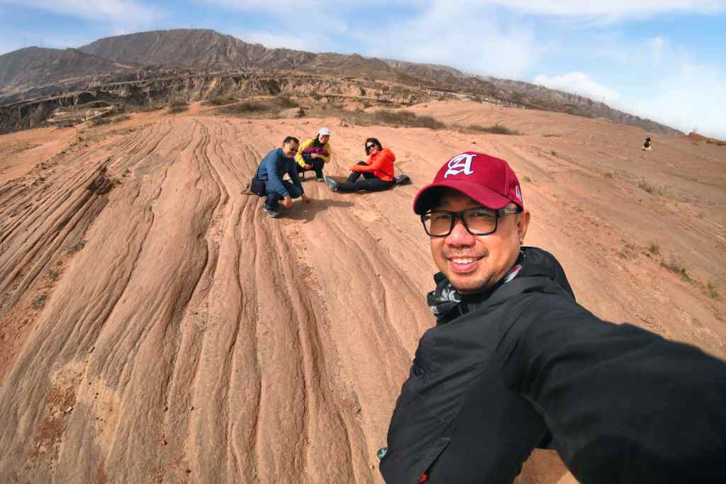 Sopir kami datang tepat waktu, dan perjalanan ke Wave Valley cuma makan waktu 40 menit. Sepanjang jalan, pemandangan bukit-bukit loess (tanah kuning khas Shaanxi) bikin kami makin penasaran.
