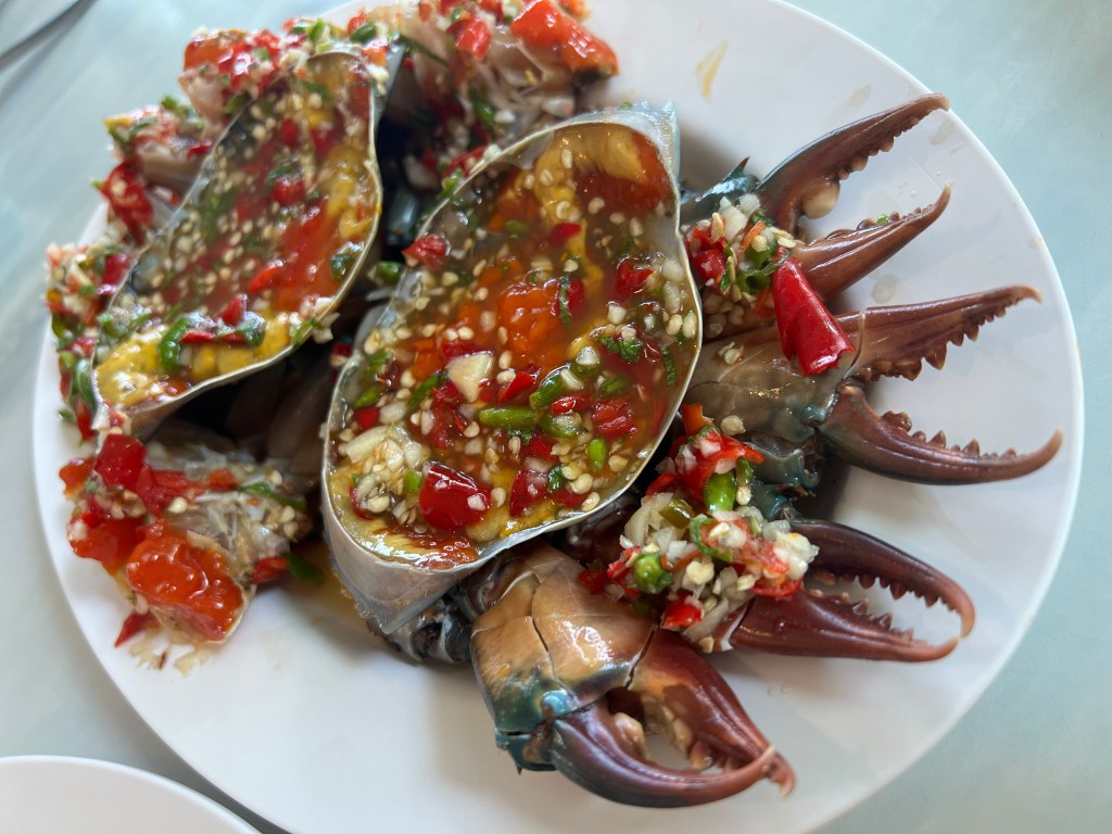 Perhentian pertama kami adalah hidden gem lokal yang terkenal dengan hidangan kepitingnya yang kelihatan selalu menggoda di postingan Instagram kami sebelum pergi ke Bangkok ini. Dengan jarak sekitar 40 menit perjalanan dengan Grab taksi, restoran ini menjadi favorit warga lokal dan masih jarang terlihat turis asing. Saat tiba, kami disambut oleh staff yang ramah dan aroma lezat makanan yang baru dimasak. Kami langsung tidak sabar untuk memesan dan menikmati pesta kepiting yang disiapkan dalam berbagai rasa – dari kepiting mentah cabai pedas hingga kepiting kukus krim dengan susu. Setiap gigitan adalah kenikmatan rasa makanan yang sesuai kami harapkan, menjadikannya awal yang baik di perjalanan kita kali ini.