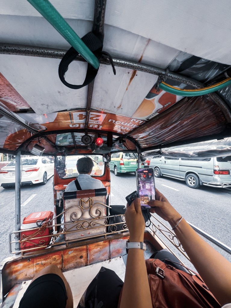 Selanjutnya, kami menuju ke salah satu tujuan belanja utama di Bangkok, area Siam dengan mengendarai Tuk Tuk.