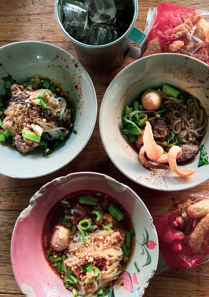 Makanan yang wajib dicoba bagi setiap pecinta street food yang datang ke Thailand. Mie disajikan dalam mangkuk kecil, sehingga kami dapat mencoba berbagai variasi. Suatu pengalaman cita rasa budaya makanan Thailand yang autentik!