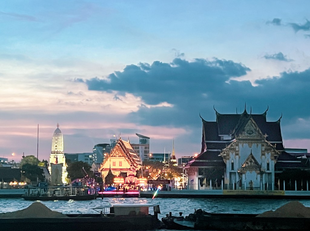 Di sore hari, kami menuju Sungai Chao Phraya untuk menikmati sungai yang sudah sangat populer di kalangan turis yang datang ke Bangkok. Kapal feri membawa kami menyusuri sungai, menawarkan pemandangan menakjubkan sunset Bangkok dan landmark bersejarah.