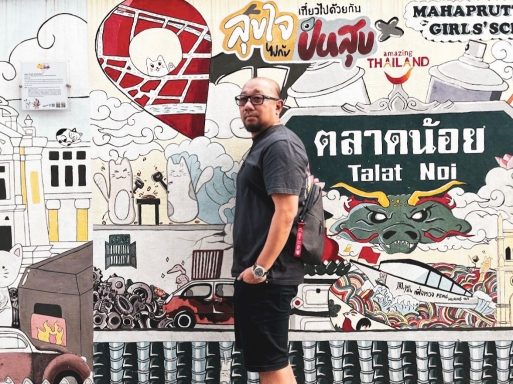 Setelah selera makan kami terpuaskan, kami kembali ke pusat kota Bangkok untuk menjelajahi pemandangan street art yang berkembang pesat. Wilayah ini menjadi kanvas bagi para seniman, dengan mural dan grafiti menghiasi dinding dan bangunan. Kami menjelajahi lingkungan sekitar Talat Noi, mengambil foto karya seni yang menceritakan kisah budaya Thailand dan lukisan kontemporer.