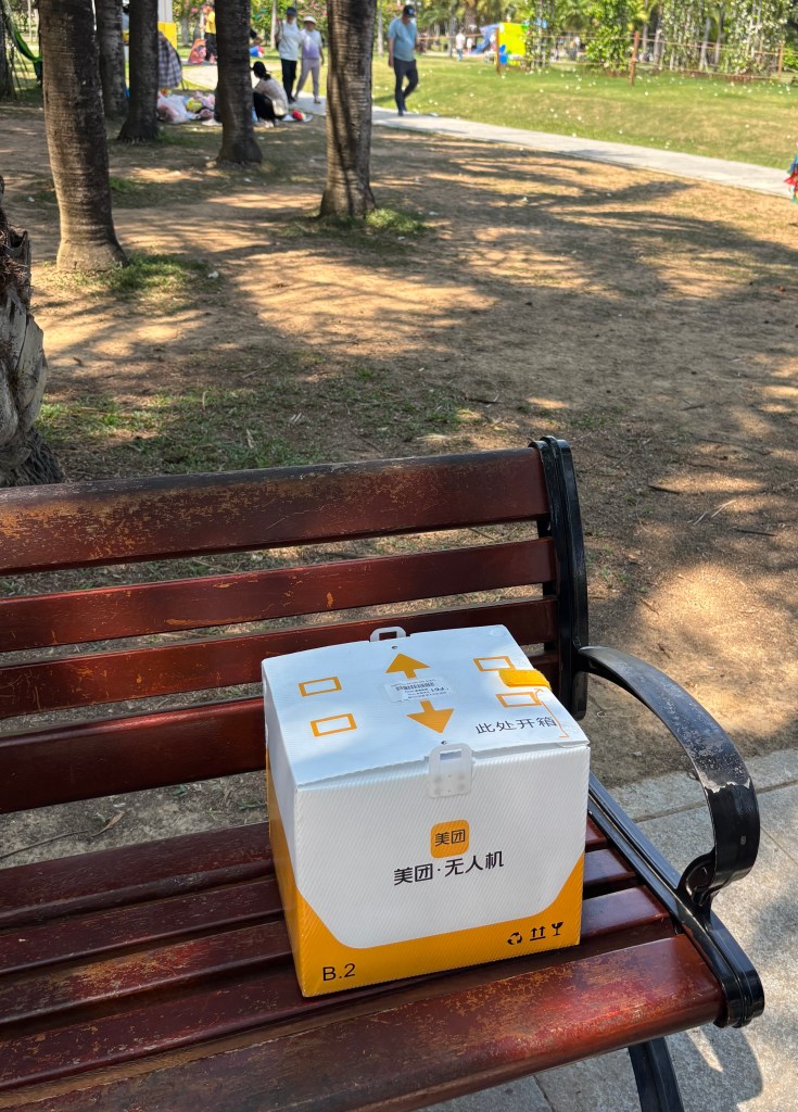Hari Minggu siang habis misa di Saint Anthony Catholic Church, cuaca cerah banget. Kami bingung mau ngapain, akhirnya sepakat buat jalan-jalan ke Lianhuashan Park sambil piknik. Tapi perut udah keroncongan. Nah, kami lihat ada beberapa kotak mesin dimana beberapa kali drone turun naik antar box makanan, penasaran dong buat coba, langsung kami buka apps Meituan dan pesan KFC dengan pengirman drone di lokai ini.