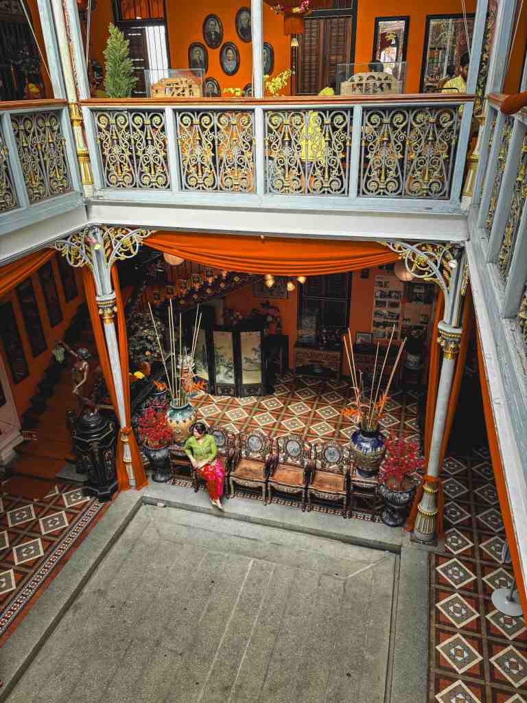 Sorenya, setelah udara tak terlalu panas, kami kembali ke Pinang Peranakan Mansion. Mansion ini dulunya adalah kediaman Kapitan Cina Chung Keng Quee, seorang tokoh kaya dan berpengaruh di Penang pada abad ke-19. Arsitekturnya memadukan unsur Tionghoa, Melayu, dan Eropa, menciptakan gaya Peranakan (atau Baba Nyonya) yang unik.