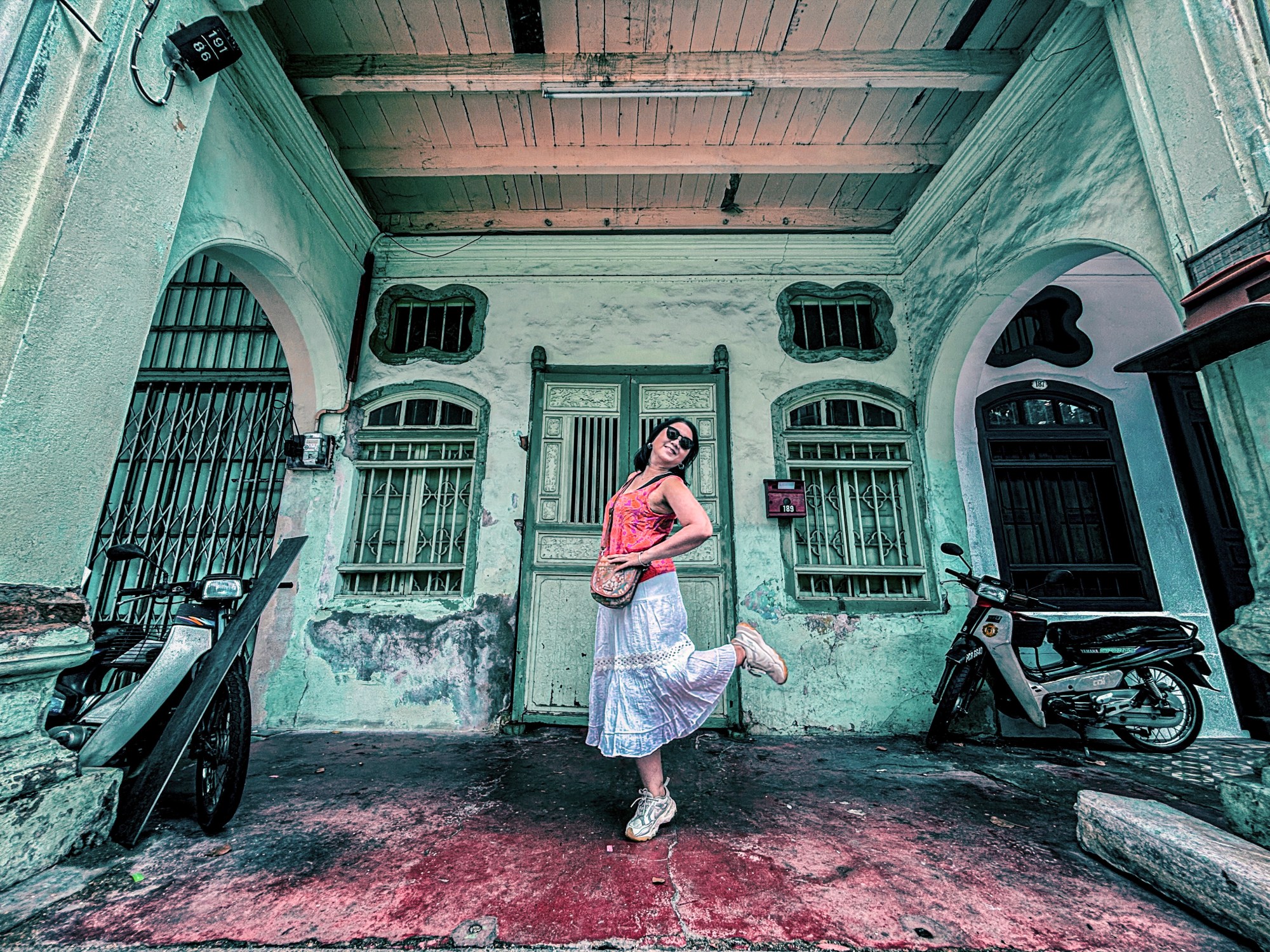 Sorenya, setelah udara tak terlalu panas, kami kembali ke Pinang Peranakan Mansion. Mansion ini dulunya adalah kediaman Kapitan Cina Chung Keng Quee, seorang tokoh kaya dan berpengaruh di Penang pada abad ke-19. Arsitekturnya memadukan unsur Tionghoa, Melayu, dan Eropa, menciptakan gaya Peranakan (atau Baba Nyonya) yang unik.