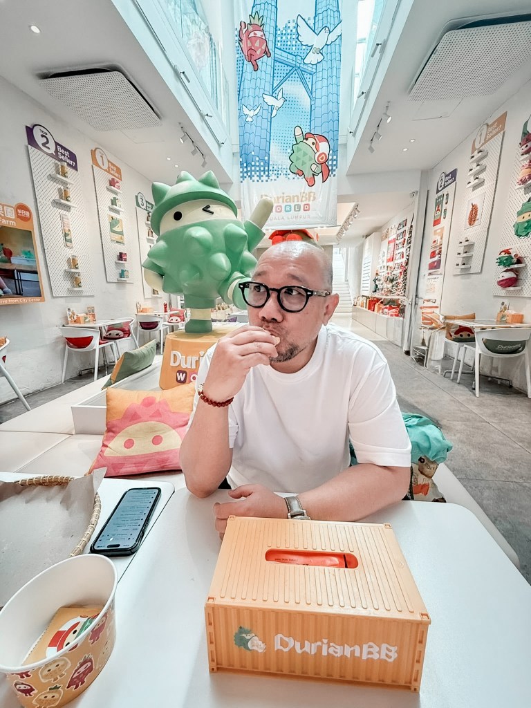 Setelah kenyang, kami berjalan sebentar ke mall di seberang restoran untuk mencerna makanan, sebelum menuju destinasi wajib lainnya: Durian BB World! Tidak sah datang ke Kuala Lumpur tanpa menikmati rajanya buah ini. Kami duduk dan menikmati Musang King yang dagingnya lembut, manis, dan pahitnya khas. Sungguh sebuah pesta rasa yang memuaskan bagi para pecinta durian.