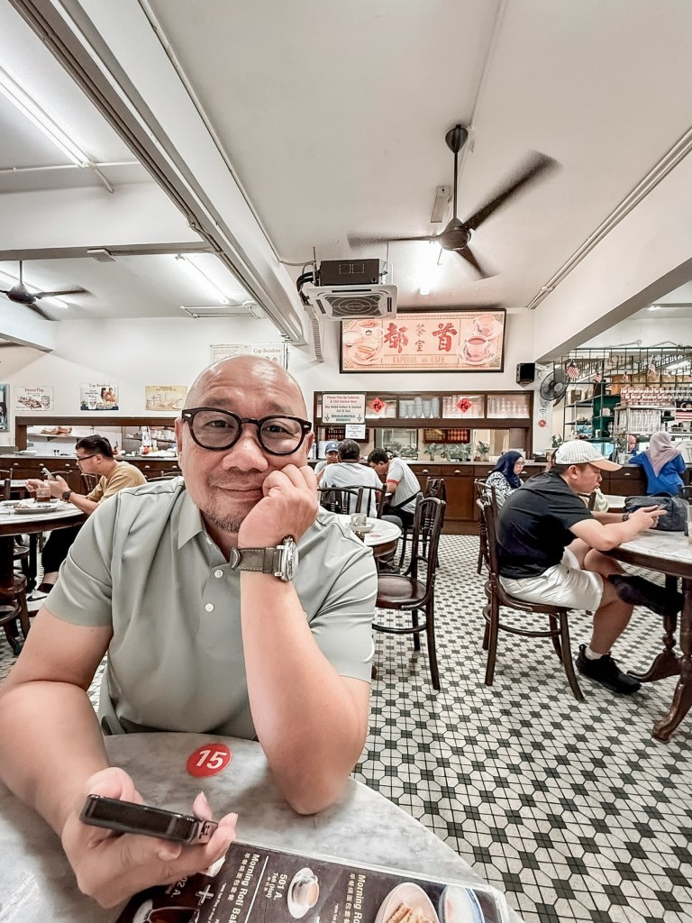 Setelah menikmati fasilitas gym hotel di pagi hari dan beristirahat sejenak, kami berjalan kaki menuju Kopi Tiam Capitol Cafe yang legendaris di kawasan Bukit Bintang. Suasana retronya langsung membawa kami kembali ke masa lalu. Bangku kayu, lantai ubin khas peranakan, dinding yang dipenuhi menu lama, dan aroma kopi yang menggoda menyambut kami.