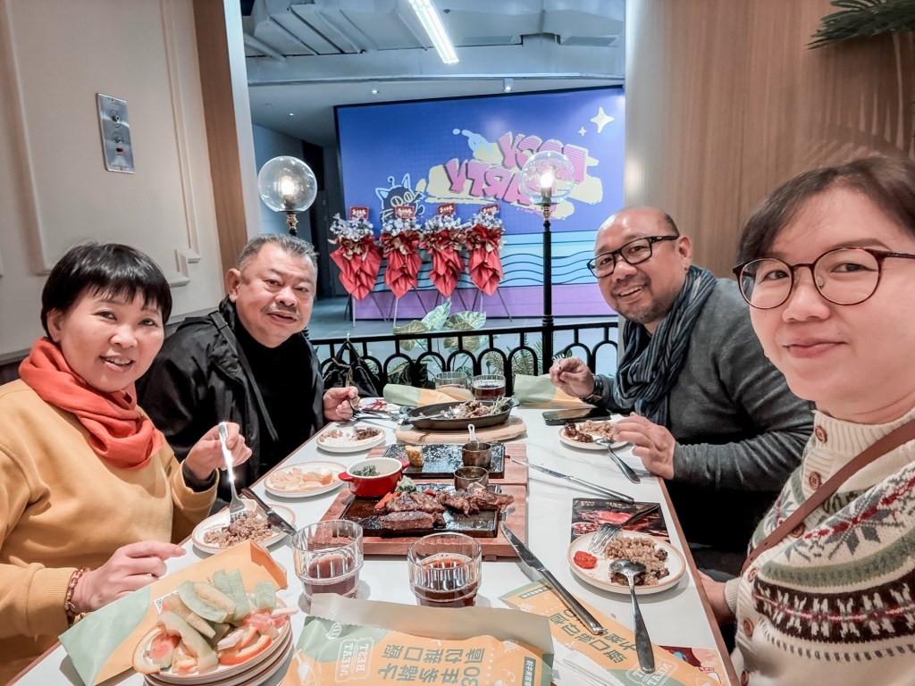Setelah sekian hari di Guizhou dan Sichuan disuguhi rasa pedas, asam, dan mala, lidah dan perut kami rindu akan sesuatu yang berbeda. Saat berjalan di sekitar Jiefangbei Pedestrian Street, kami melewati sebuah mal besar. Melihat deretan restoran, hati kami tertuju pada sebuah restoran steak yang baru buka dan sedang ada promo pembukaan. Ini adalah jawaban yang sempurna! Kami masuk dan menikmati hidangan daging yang lezat dengan saus klasik, kentang, dan sayuran segar. Momen makan malam itu terasa seperti “reboot” bagi indra perasa kami—segar, sederhana, dan sangat memuaskan setelah petualangan kuliner yang intens.