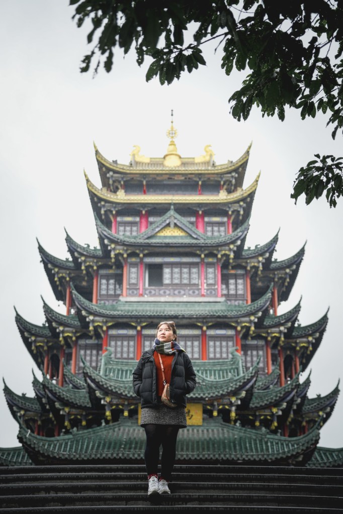 Untuk menyeimbangkan keramaian kota, kami mengunjungi Hongenshi Park. Taman ini adalah sebuah oase hijau yang tenang di tengah hiruk-pikuk Chongqing. Kami menyusuri jalan setapaknya yang teduh hingga mencapai sebuah kuil atau paviliun tradisional di dalamnya.