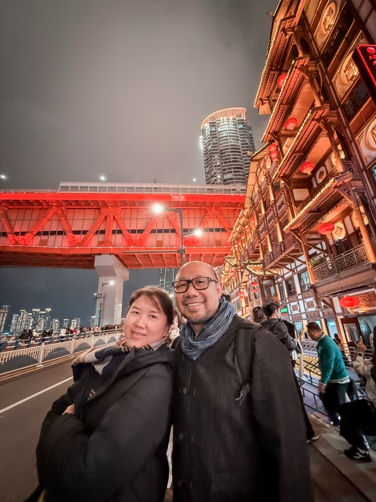 Hari ini adalah hari transisi yang sempurna: dari ketenangan relatif Chengdu menuju denyut nadi metropolitan Chongqing yang hiper-aktif. Kami telah melewati ujian keramaian pertama dan sekarang telah aman berada di “markas” kami, siap menyambut puncak perayaan dan keajaiban teknologi di langit kota gunung ini. Happy New Year 2026 from Chongqing! 🎉🎉