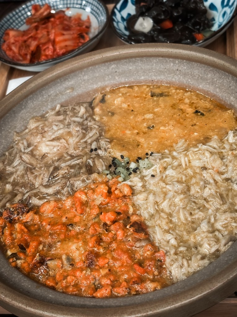 Rekomendasinya jelas: Nasi dengan Telur Kepiting (Crab Roe). Pas datang, tampilannya sudah menggiurkan, ditabur 4 macam daging kepiting segar dalam satu pot wadah makan besar.