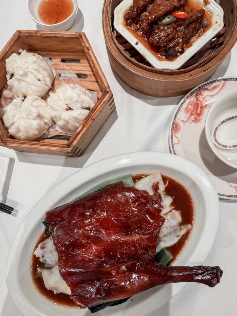 Sesuai rencana, kami pesan signature dish-nya: Vermicelli Rice Roll dengan Roasted Goose di atasnya. Kombinasi antara rice roll yang lembut dengan kulit angsa panggang yang renyah dan juicy itu juara banget!