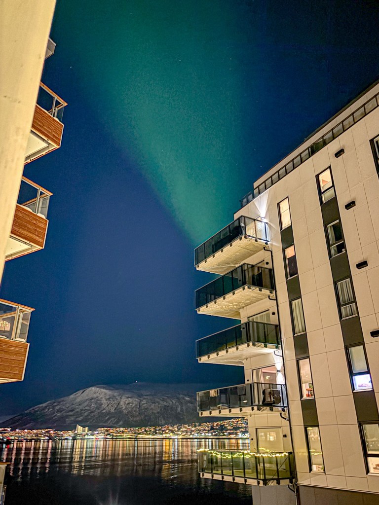 | Spot favorit | Telegrafbukta, Prestvannet, atau ikut tour ke luar kota. Tapi kami malah dapat aurora spektakuler di harbour dekat apartemen! |